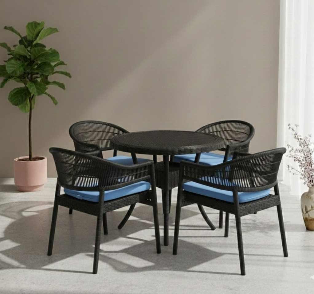 طقم رتان خارجي 5 قطع شل بلاستيك بيور لون اسود بيجت جاكوار